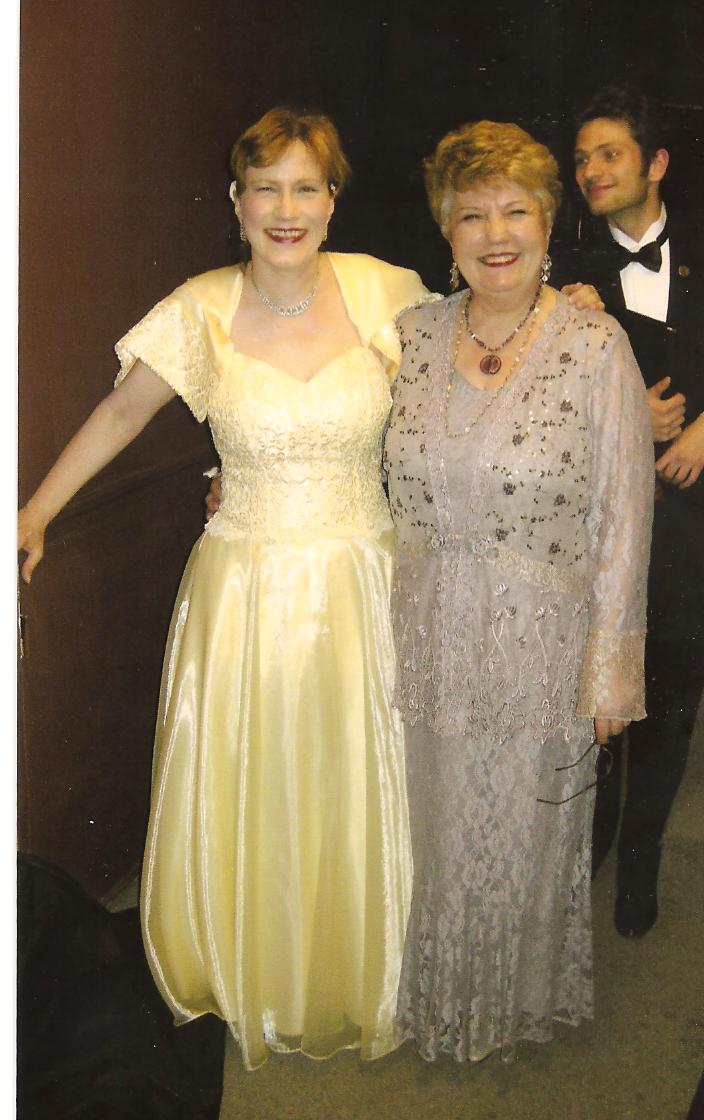 Stephanie and Avis Picton (who share the role of Violetta's maid Annina)backstage after one